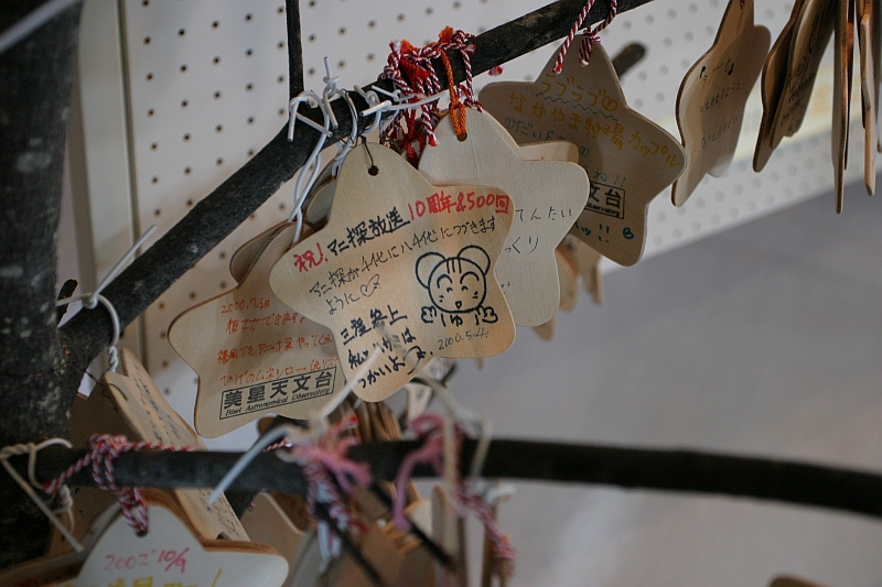 | The "wishing tree" inside Bisei Astronomical Observatory. The star shape ema can be bought in the observatory.