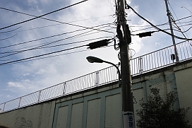 | [EP01] Lamp post near the crossing near the Mizuho municipal fire station : the gang chanting YO-SHI-NO seeing Yoshino working