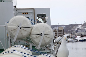 | Sailing out of Abashiri port | Sailing out of Abashiri port | Bird aboard |