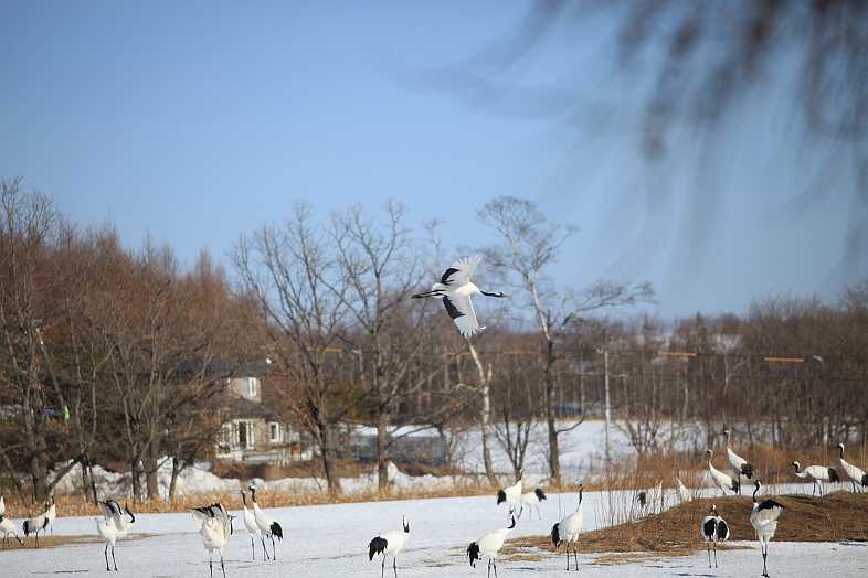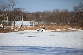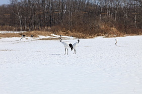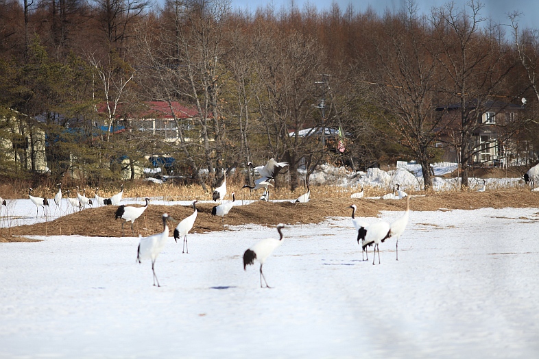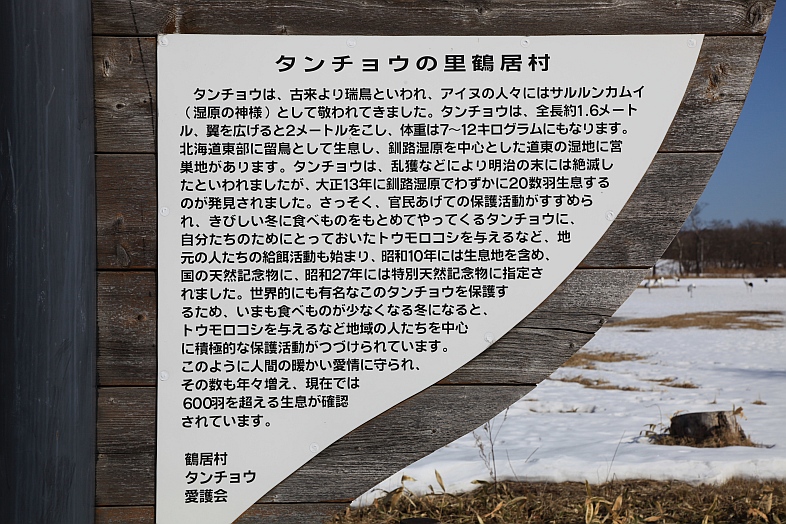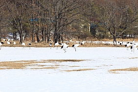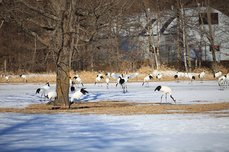 Tsurumidai (Crane-seeing-terrace) is a winter feeding ground for wild Tanchou (Japanese Crane, as known as Red-Crowned Crane) found by Ms Watabe Tome in Tsurui Village, Kushiro. At first, Tome-san voluntary fed then near extinct Tanchou in her own land 40+ years ago. In recognition of her effort in protecting the near extinct wild life, local government grant her the use of a nearby vacant ground previously own by a primary school, and appointed her as the official Tanchou feeder. Currently she is over 80 years old and still patrols Tsurumidai daily. The nearest train station is Kushiro station of JR Senmou Main Line. | ||