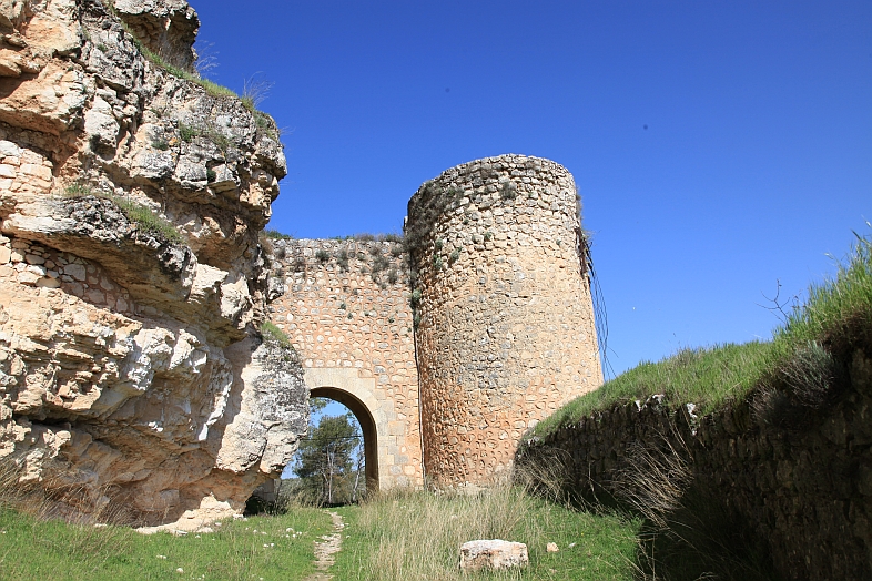 | From the stone wall surrounding Del Campo Tower looking back at the Castle of Alarcon